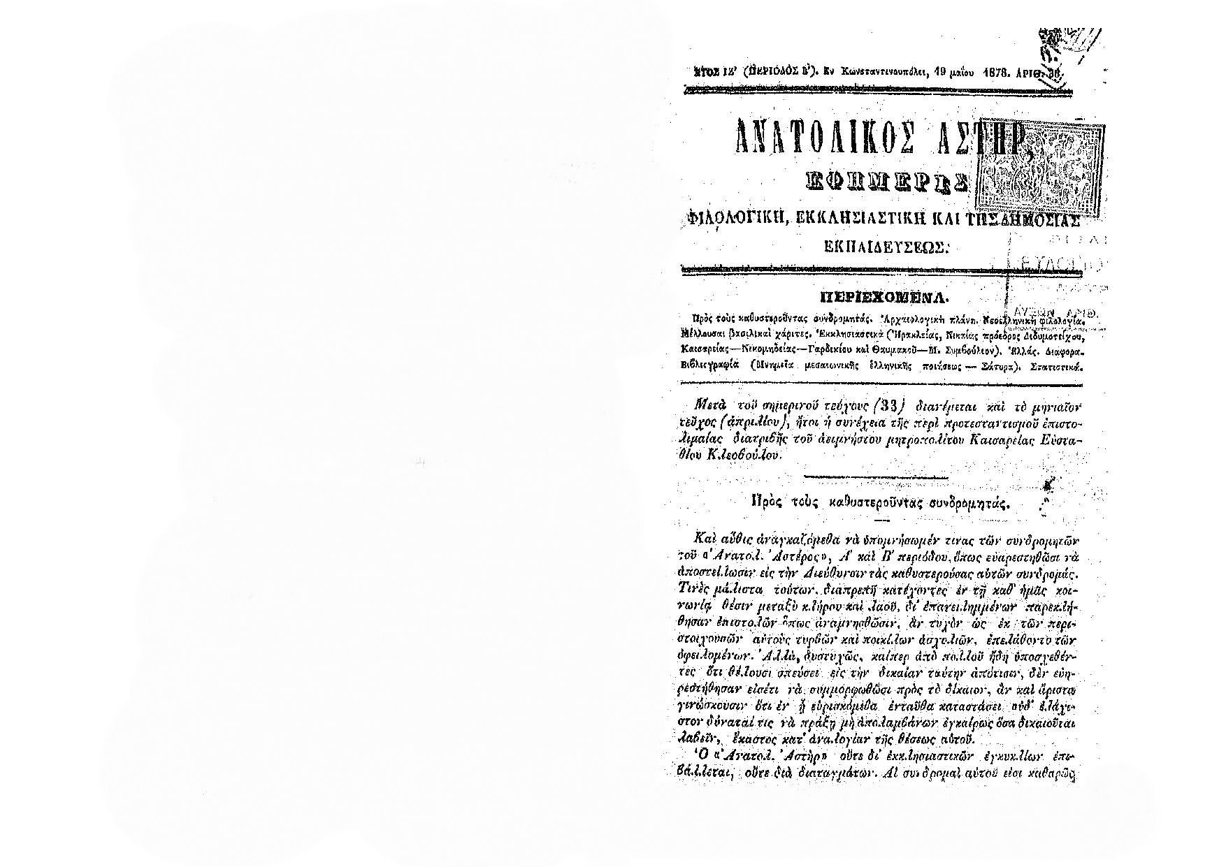 Ανατολικός Αστήρ: εφημερίς φιλολογική, εκκλησιαστική και δημοσίας εκπαιδεύσεως, τόμος 17, 33ο τεύχος